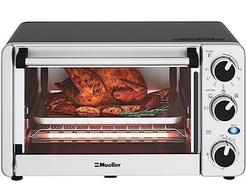 Read More...Toaster Oven 4 Slice, Multi-function Stainless Steel Finish with Timer – Toast – Bake – Broil Settings, Natural Convection – 1100 Watts of Power, Includes Baking Pan and Rack by Mueller Austria