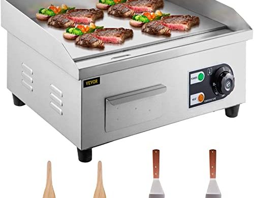Buy VEVOR 14″ Electric Countertop Flat Top Griddle 110V 1500W Non-Stick Commercial Electric Griddles Restaurant Teppanyaki Grill Stainless Steel Adjustable Temperature Control 122°F-572°F, Sliver: Commercial Griddles – ✓ FREE DELIVERY possible on eligible purchases